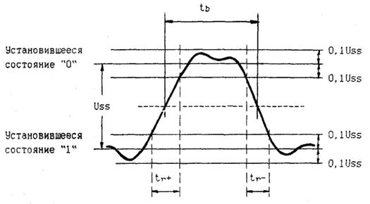 Время нарастания tr сигнала на выходе источника, показанное на рисунке 8, для скоростей передачи ниже 1000 бит/с составляет 100 мкс, а для скоростей выше 1000 бит/с составляет 0,1tb [1].