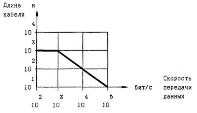 Зависимость длины кабеля от скорости передачи данных показана на рисунке В.1.