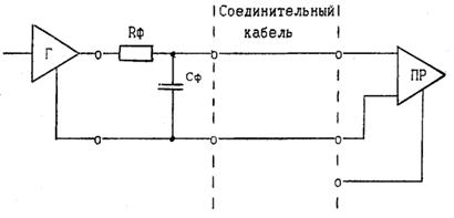 Схема формирования сигнала по методу б приведена на рисунке Г.1. Для типового кабеля, у которого шунтирующая емкость пары составляет 0,05 мкФ на км, значение емкости Сф выбирается по таблице Г.1. Сопротивление Rф выбирается таким, чтобы сумма Rф и внутреннего сопротивления генератора Rг была примерно равна 50 Ом. Rф вычисляется по формуле: