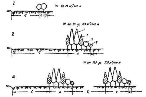 III - систему из двух шестирядных лесных полос при W до 250 м3/пог. м.