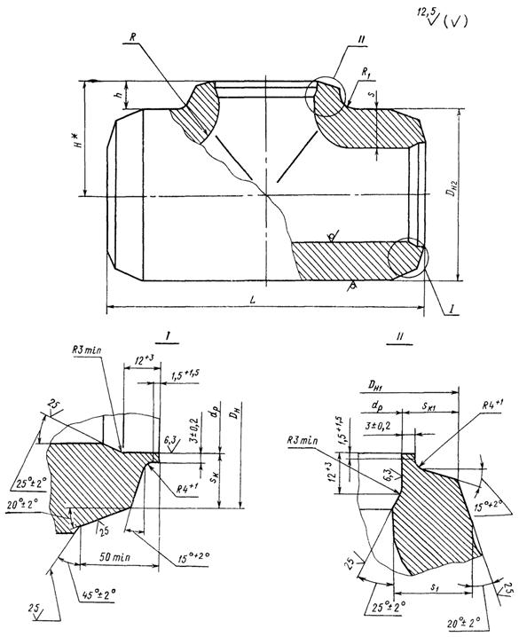 ТРОЙНИКИ ШТАМПОВАННЫЕ РАВНОПРОХОДНЫЕ ДЛЯ ПАРОПРОВОДОВ ТЭС КОНСТРУКЦИЯ И РАЗМЕРЫ |