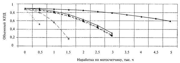Изменение объемного КПД гидроцилиндров