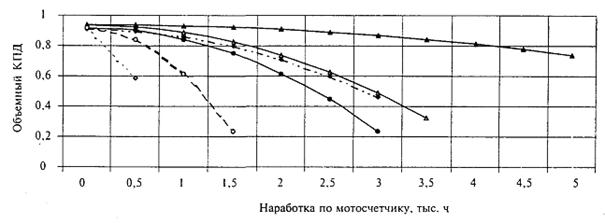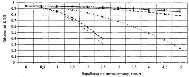 Изменение объемного КПД шестеренных и лопастных насосов
