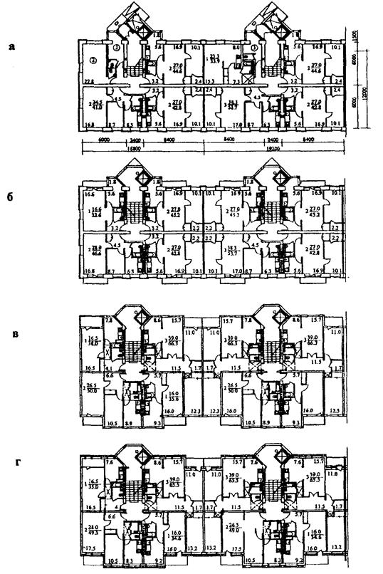 СХЕМЫ СЕКЦИЙ МНОГОСЕКЦИОННЫХ ЖИЛЫХ ДОМОВ