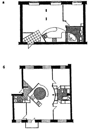 Рис. 58. Примеры размещения помещений хозяйственного назначения в многоквартирных жилых домах: