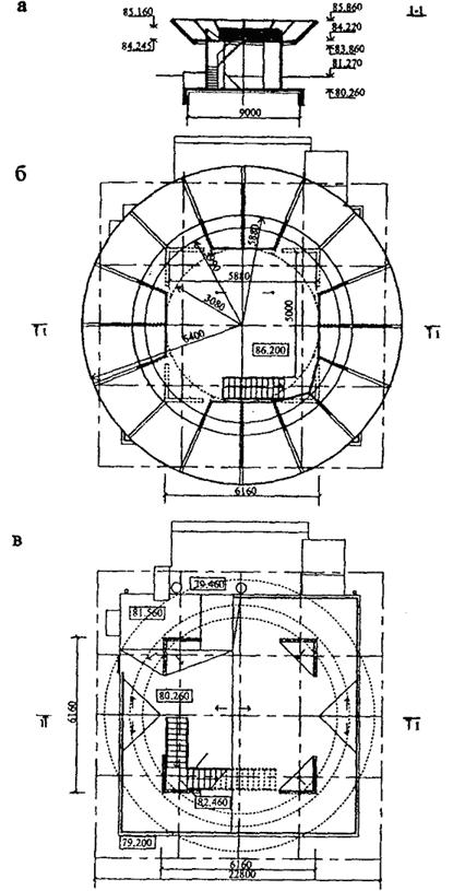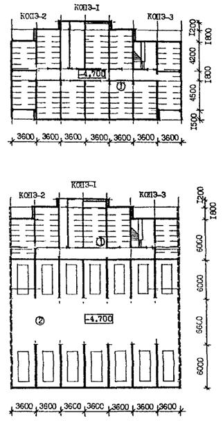 Рядовые секции (в том числе с торцевыми окончаниями) по форме плана могут проектироваться прямолинейными или со сдвигом в плане, а также сложной формы (в том числе криволинейной, Т-образной и т.д. - рис. 4а, б).