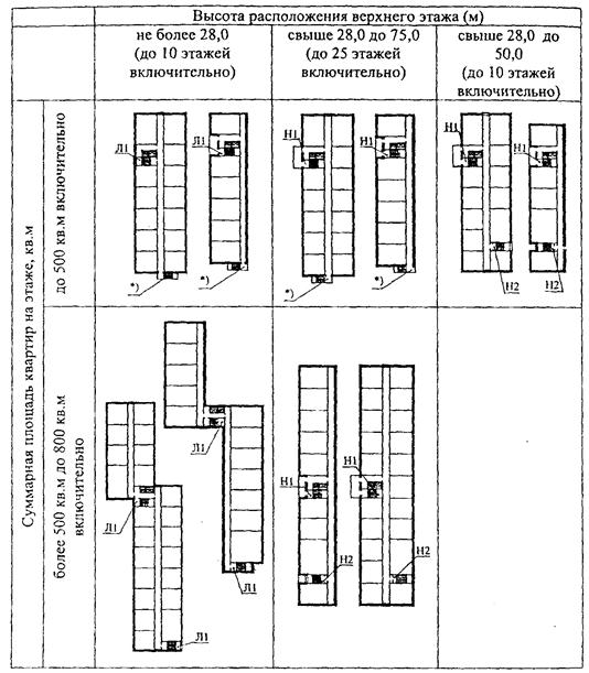 Секции могут проектироваться двух-, трех-, четырехквартирными, а также с большим числом квартир на этаже. В жилище I категории комфорта в пределах секции может быть выполнена одна квартира.