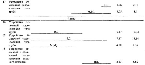 Д5, Д6 покрывают омоноличенные швы тела трубы слоем горячей битумной мастики и поверх нее наклеивают слой гидроизоляции шириной 25 см. |