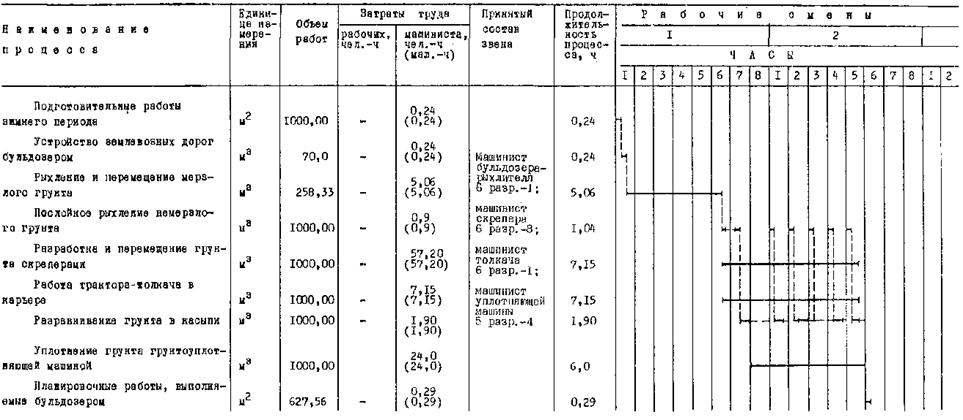 1.2. ТТК рассчитана на разработку супесчаных грунтов c включением до 10 % глинистых частиц. Район строительства расположен в пятой температурной зоне. Глубина промерзания грунта с применением мероприятий по предохранению его от промерзания во второй трети зимы составляет 0,3 м. Грунтовые воды расположены ниже отм. минус 5,0 м. Производство работ предусмотрено в три смены.