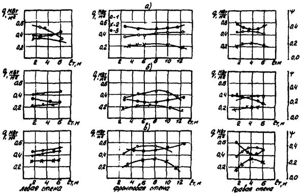 падающие и воспринятые тепловые потоки по периметру и высоте топочной камеры, локальный и средний коэффициенты тепловой эффективности экранов;
