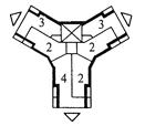2) в трех направлениях ( секции с углами поворота на 90°, 120° и др.).