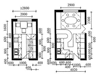 6 м2-кухонная зона Рекомендуемые: ³ 8 м2 - для квартир на семью из 2 чел. и одиноких; ³ 10 м2 - для квартир на семью из 3 - 5 чел. |