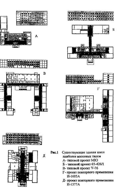 Рис. 1 Существующие здания школ наиболее массовых типов