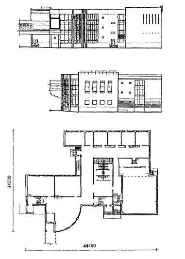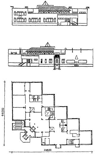 12.10. Примеры проектных решений блоков-пристроек к существующим зданиям общеобразовательных школ, разработанные МНИИТЭП на протяжении всего периода применения таких блоков в качестве объектов массового строительства для реконструкции существующих школьных зданий и увеличения их объемов, приведены на рис. 2 - 9. Проекты отражают как общие, так и специфические особенности объемно-планировочных, конструктивных и архитектурно-художественных решений блоков-пристроек.