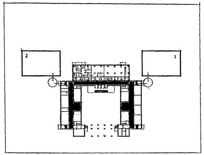 спортзала; 2 - душевые и раздевальные;