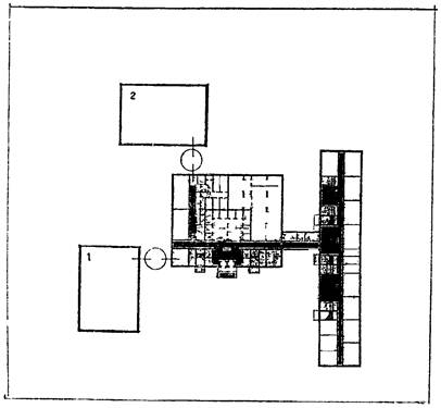 4 - медблок, 5 - административные помещения; 6 - вестибюль с гардеробом;