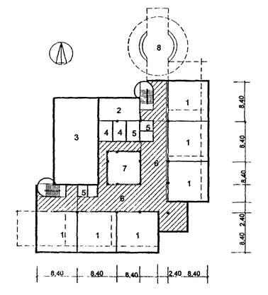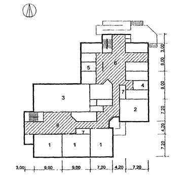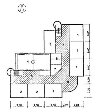 7 - санузел; 8 - рекреации зального типа;