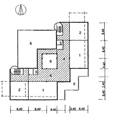 План 2 этажа: 1 - второй свет бассейна; 2 - малый