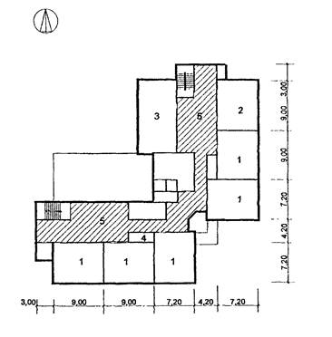 3 - комната продленного дня, 4 - санузел; 5 - рекреация зального типа;