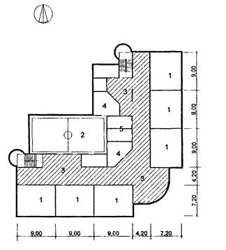 7 - методический кабинет; 8 - рекреация зального типа; 9 - второй свет