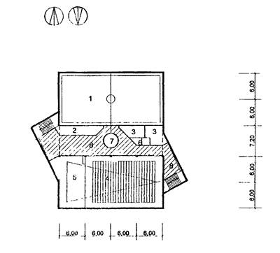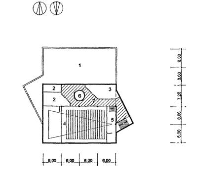 6 - второй свет фойе-рекреации; 7 - рекреация.