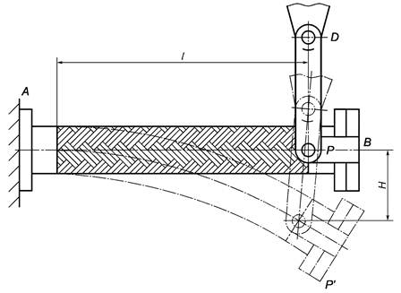 Длина изгиба газового шланга L должна составлять 6 · DN. Амплитуду движения конца газового шланга определяют поворотной деталью, соединяющей точки Р и D. При испытании строительного ряда, который содержит газовые шланги с оплеткой и без оплетки, необходимо проводить испытания газового шланга без оплетки.