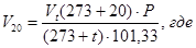Приведение объема воздуха к стандартным условиям (температура 20 °С и давление 760 мм рт. ст.) проводят по формуле: