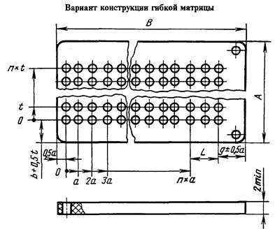 Минимальные габаритные размеры гибкой матрицы, приведенные на черт. 1, 2, определяются максимальным количеством связей между ячейками блока. Ширина матрицы А определяется по формуле