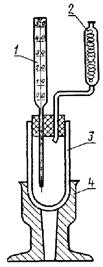 1 - термометр; 2 - стеклянная трубка с ватой; 3 - сосуд Дьюара; 4 - деревянная подставка