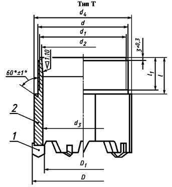 Основные размеры коронок должны соответствовать указанным на рисунках 1 и 2 (конструкция режущей части коронок изображена условно) и в таблице 1.