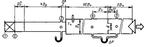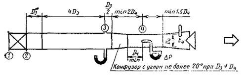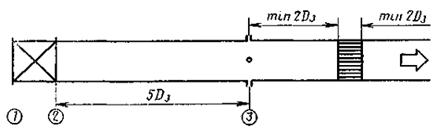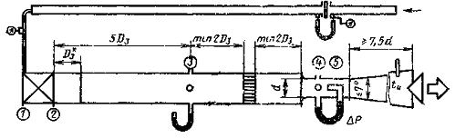 Приемники располагают на расстоянии от вентилятора, равном не менее пяти диаметров трубопровода стенда.