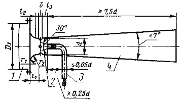 r1 = 0,2d; r2 = 0,333d; l1 = 0,304d; l2 = 0,3d; 0,4d ³ l3 ³ 0,2d; d < 0,13d
