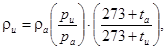 1.4.2.1. Плотность воздуха в измерительном сечении испытательного стенда (ρu) в килограммах на кубический метр вычисляют по формуле