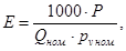 3.4. Удельный расход энергии (Е) определяют как отношение расхода энергии к полезной мощности вентилятора, определяемое при работе на режиме номинальной подачи и номинального полного давления по формуле