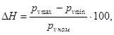 где pvmax, pvmin - соответственно максимальное и номинальное полное давление вентилятора в пределах рабочей зоны при номинальной подаче.
