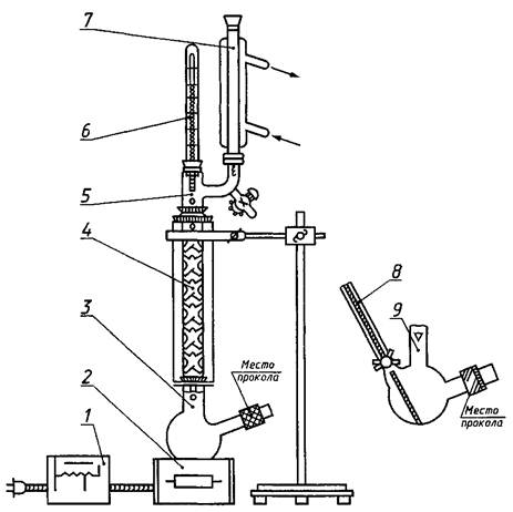 В колбу помещают стеклянную палочку, наливают 50 см3 октилового или бутилового спирта и ополаскивают им стенки колбы. Колбу с используемым спиртом и палочкой взвешивают (т5). Результаты всех взвешиваний в граммах записывают с точностью до второго десятичного знака.
