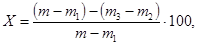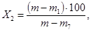 Степень эвакуации содержимого их аэрозольной упаковки Х2, %, вычисляют по формуле