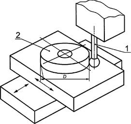 1 - двухкоординатная измерительная головка; 2 - эталон круглости