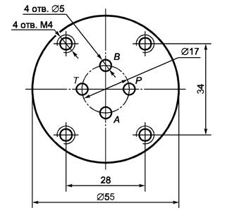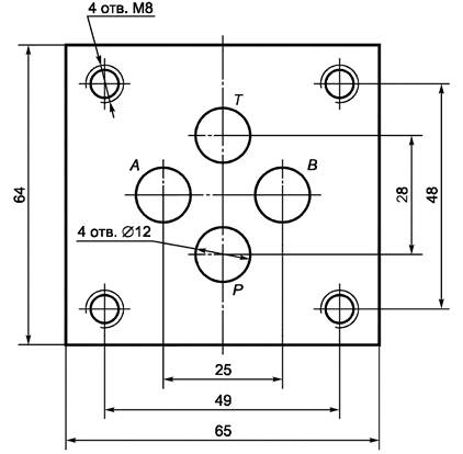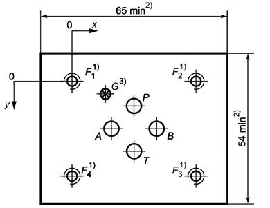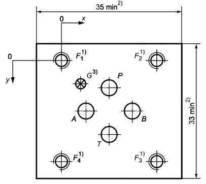 Рисунок 2 - Стыковые плоскости для четырехлинейных дросселирующих гидрораспределителей с серворегулированием с максимальным диаметром отверстия 5 мм