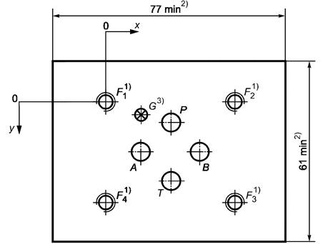 Рисунок А.1 - Присоединительные размеры стыковых плоскостей для четырехлинейных дросселирующих гидрораспределителей с серворегулированием с максимальным диаметром отверстия 5 мм