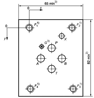 Рисунок 1 - Стыковые плоскости для четырехлинейных дросселирующих гидрораспределителей с серворегулированием с максимальным диаметром отверстия 3,8 мм