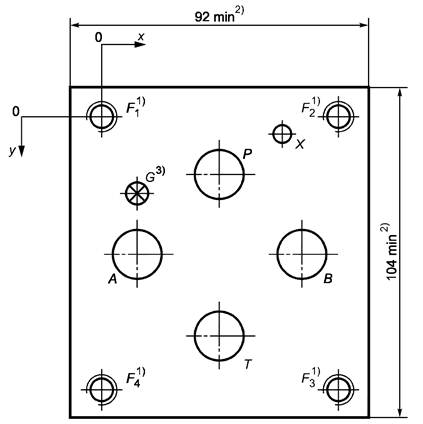 Рисунок А.3 - Присоединительные размеры стыковых плоскостей для четырехлинейных дросселирующих гидрораспределителей с серворегулированием с максимальным диаметром отверстия 16 мм