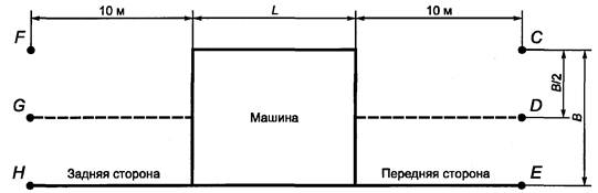 Б.3.2.3 Тормозной путь в метрах измеряют от точки испытательного участка, где тормоз приводится в действие, до точки, на которой машина останавливается.
