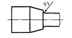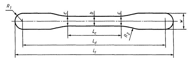 Для спеченных изделий рекомендуется использовать образец для испытания с двумя переходными частями на каждом конце. Радиус сопряжения R2 рабочей части с переходным участком головки образца должен быть от 1,5 до 5 мм (рисунок 2).