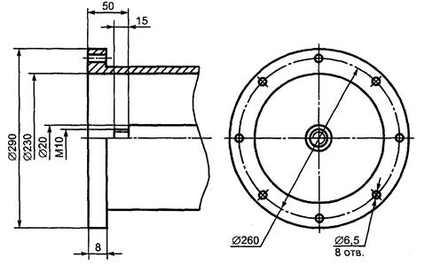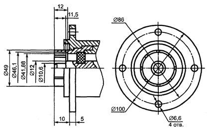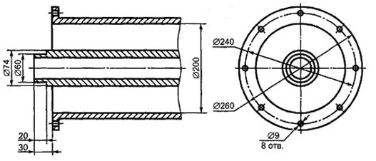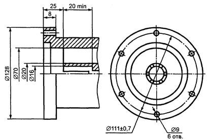 Рисунок А.6 - Присоединительные размеры симметричных входов (выходов) коммутаторов с волновым сопротивлением 120 Ом и входной мощностью до 250 кВт (изображена половина симметричного двухкоаксиального фидера)