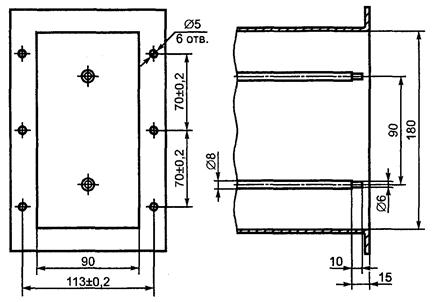 Рисунок А.5 - Присоединительные размеры симметричных входов (выходов) коммутаторов с волновым сопротивлением 300 Ом и входной мощностью до 250 кВт (изображена половина симметричного двухкоаксиального фидера)