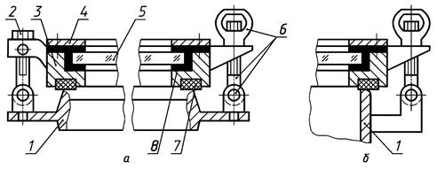 1 - щиток; 2 - прокладка; 3 - защелка; 4 - винт; 5 - гайка