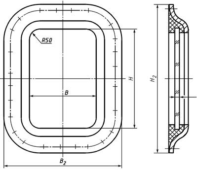 За номинальный размер иллюминатора приняты его размеры на просвет по ширине (В) и высоте (H).