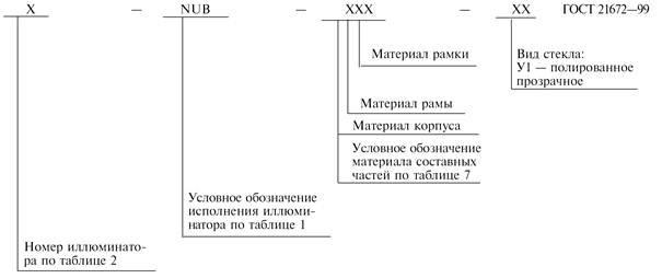 Примечание - По требованию потребителя на иллюминаторы могут быть установлены затемнительные и солнцезащитные щитки. Типы применяемых для иллюминаторов щитков и их условные обозначения приведены в приложении А. |