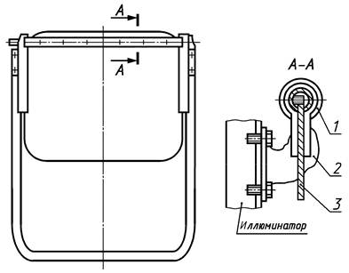 Динамометр прикрепляют перпендикулярно к плоскости стекла в середине стороны рамы иллюминатора, противоположной петлям-задрайкам.
